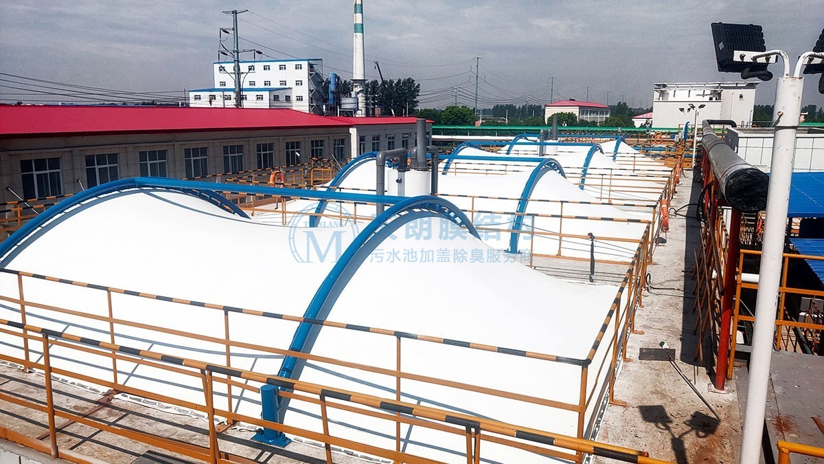 污水池膜結構由于其造型自由輕巧、阻燃、制作簡易、安裝快捷、節能、自潔性等優點,備受環保行業青睞。光滑...